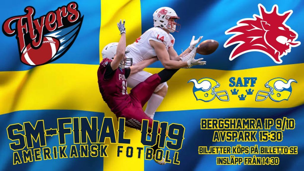 Lördag 9 oktober spelas SM-finalen för U19 i amerikansk fotboll. Täby Flyers möter Tyresö Royal Crowns. Matchen spelas på Bergshamra IP och startar 15.30.