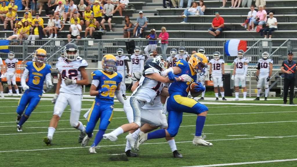 I den fjärde kvarten tappar Sverige fart och Frankrike kan reducera till 31–21, men riktigt spännande blir det aldrig. Nils Böök tar hand om ytterligare en fransk fumble, Ceasar Winsnes stoppar en fransk spelare på ett fjärde försök och när Vilgot Valeskog springer 23 yards för en svensk first down i slutet av matchen är segern hemma.