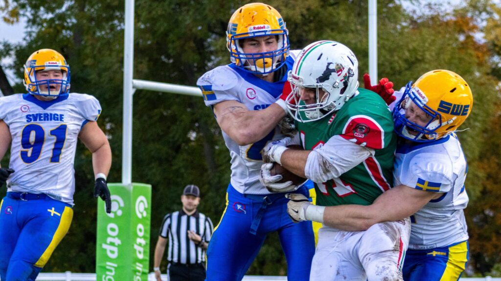 Sverige besegrade Ungern med 13–6 (7–6) på Budapest Rugby Center lördagen den 25 oktober och slutade därmed på en sjundeplats i EM för herrlandslag i amerikansk fotboll 2024/25. Matchen i Budapest var jämn och spännande hela vägen in i kaklet – en interceptionretur för touchdown av Hugo Dyrendahl med mindre än två minuter kvar av matchen säkrade den svenska segern.