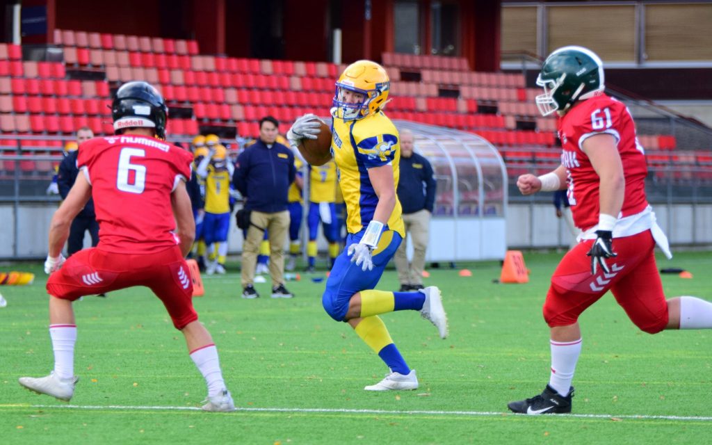 Men närmare än så kommer inte Sverige även om det svenska försvaret på det stora hela spela bra matchen igenom igenom under ledning av Adrian Göthlin Bekibele, som senare utses till matchens bästa spelare i Sverige tack vare sina 5,5 tacklingar, 3 tacklingar för förlust av yards och en sack. Nils Emsevik har Sveriges enda interception – Sverige tog också hand om två danska fumbles i matchen.