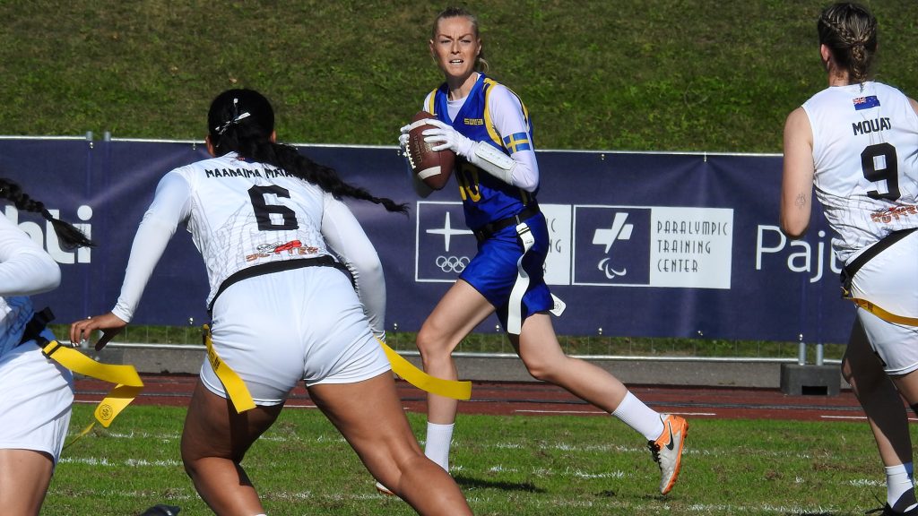 Om du är ny på flaggfotboll, tycker det är intressant men inte helt har förstått charmen, då ska du se Sverige mot Nya Zeeland från VM i Finland 2024! Sverige vinner en helt fantastiskt underhållande, svängig och dramatisk match som avgörs på övertid efter att Nya Zeeland gjort resultat lika i slutsekunderna. Det går att hävda att Sverige borde avgjort tidigare och att man till viss del slarvade bort en till synes klar vinst, men det var en match som innehöll det mest och det blev en kväll att minnas., idrott när den är som bäst.