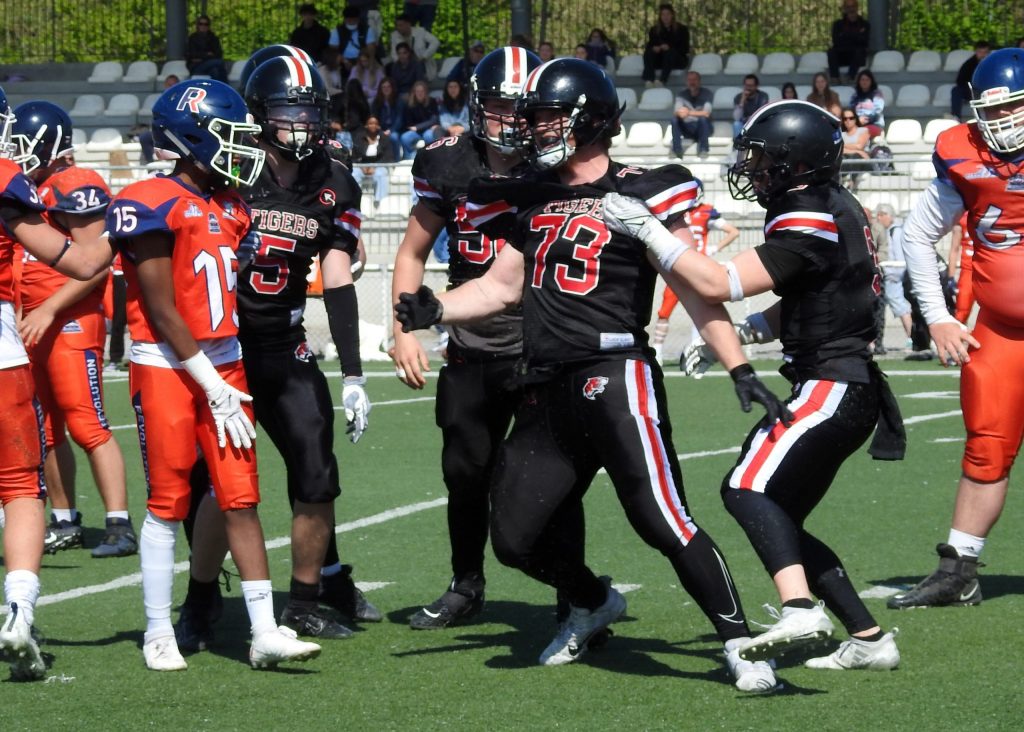 Den svenska defensiva linjen imponerar och ger inte motståndarnas QB någon tid att passa eller running backs någon plats att springa på.